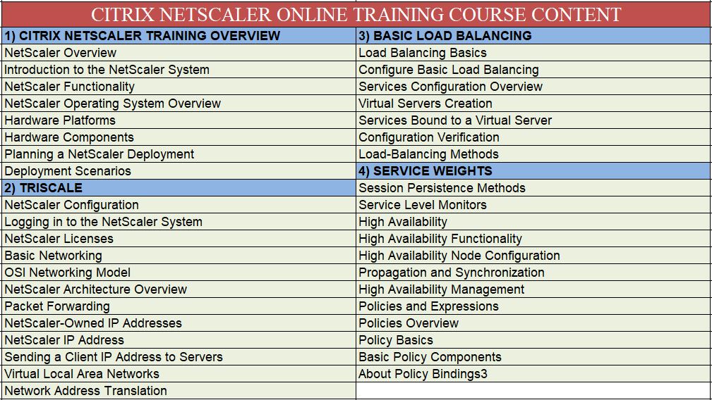 CITRIX NETSCALER ONLINE TRAINING COURSE CONTENT