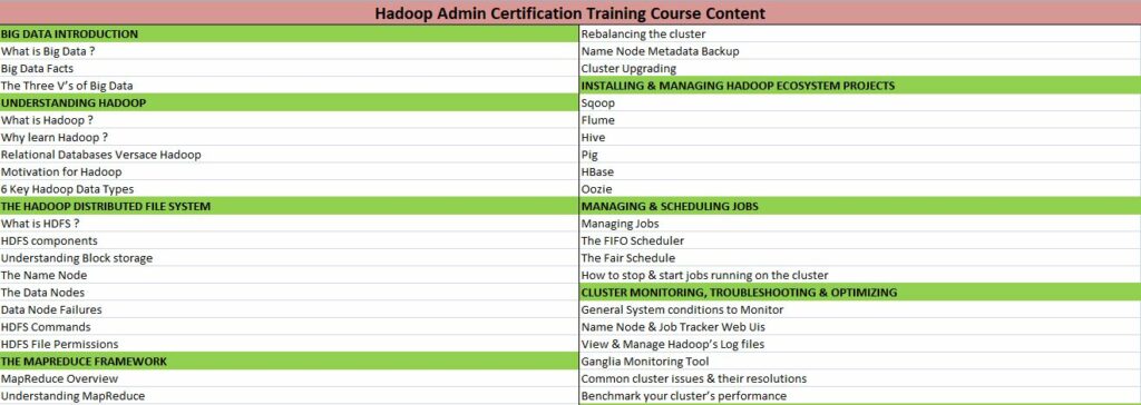 HADOOP ADMIN TRAINING COURSE CONTENT