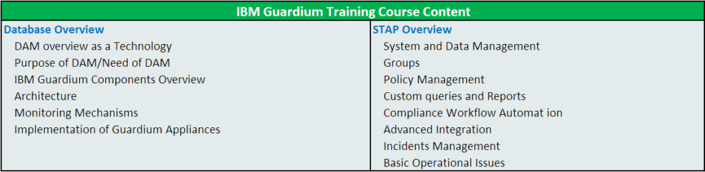 - Course Name: IBM Guardium Training
