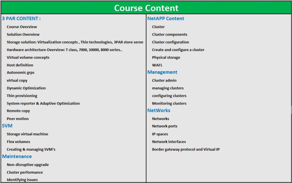NETAPP TRAINING COURSE CONTENT